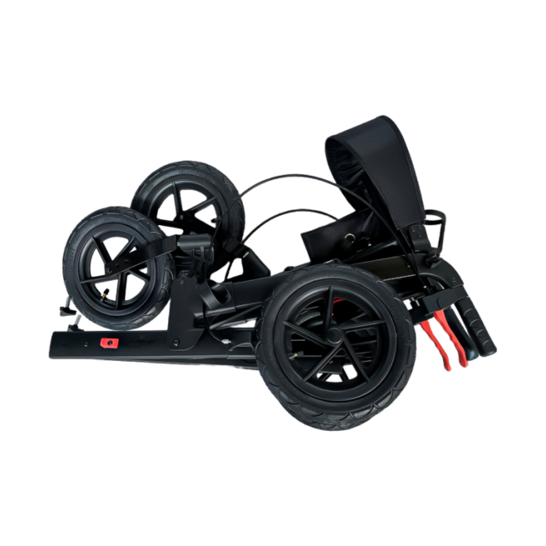 Dispõe de 4 rodas de 10”, sendo as 2 dianteiras com garfos giratórios. Por conter rodas maiores é ideal para o uso em lugares ao ar livre, como campos e praias, assim como em terrenos irregulares na cidade.