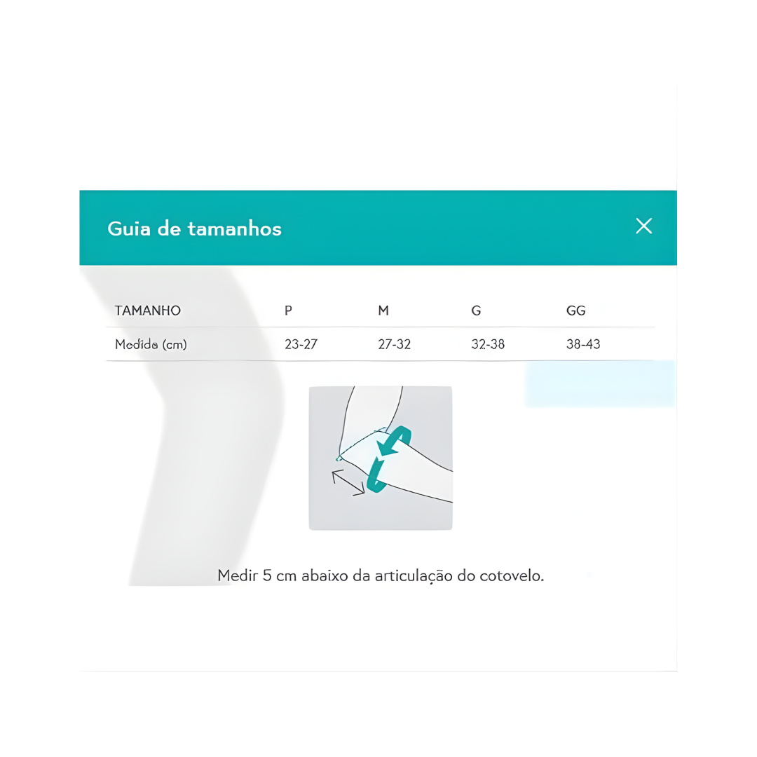 Confeccionado em elástico resistente, proporciona segurança, conforto para os músculos do braço e antebraço e não escorrega com facilidade. Uso bilateral. Produto lavável.