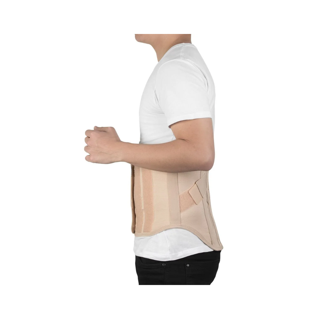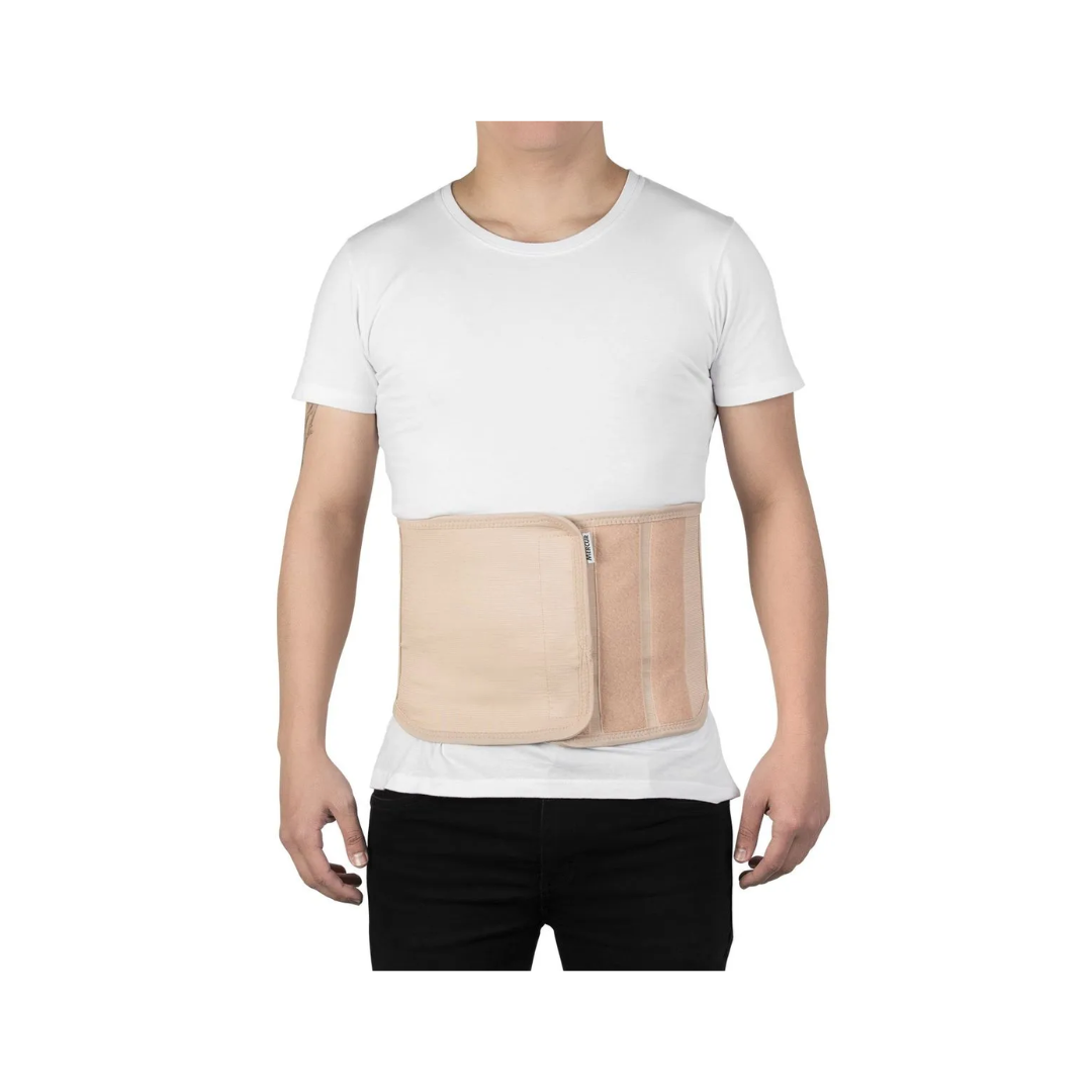 Confeccionado em elástico resistente é ajustável por fechos aderentes e possui reforço lateral, indicado para a região lombossacral. O modelo modelado permite uma restrição menor do quadril e a adaptação a diferentes anatomias corporais.