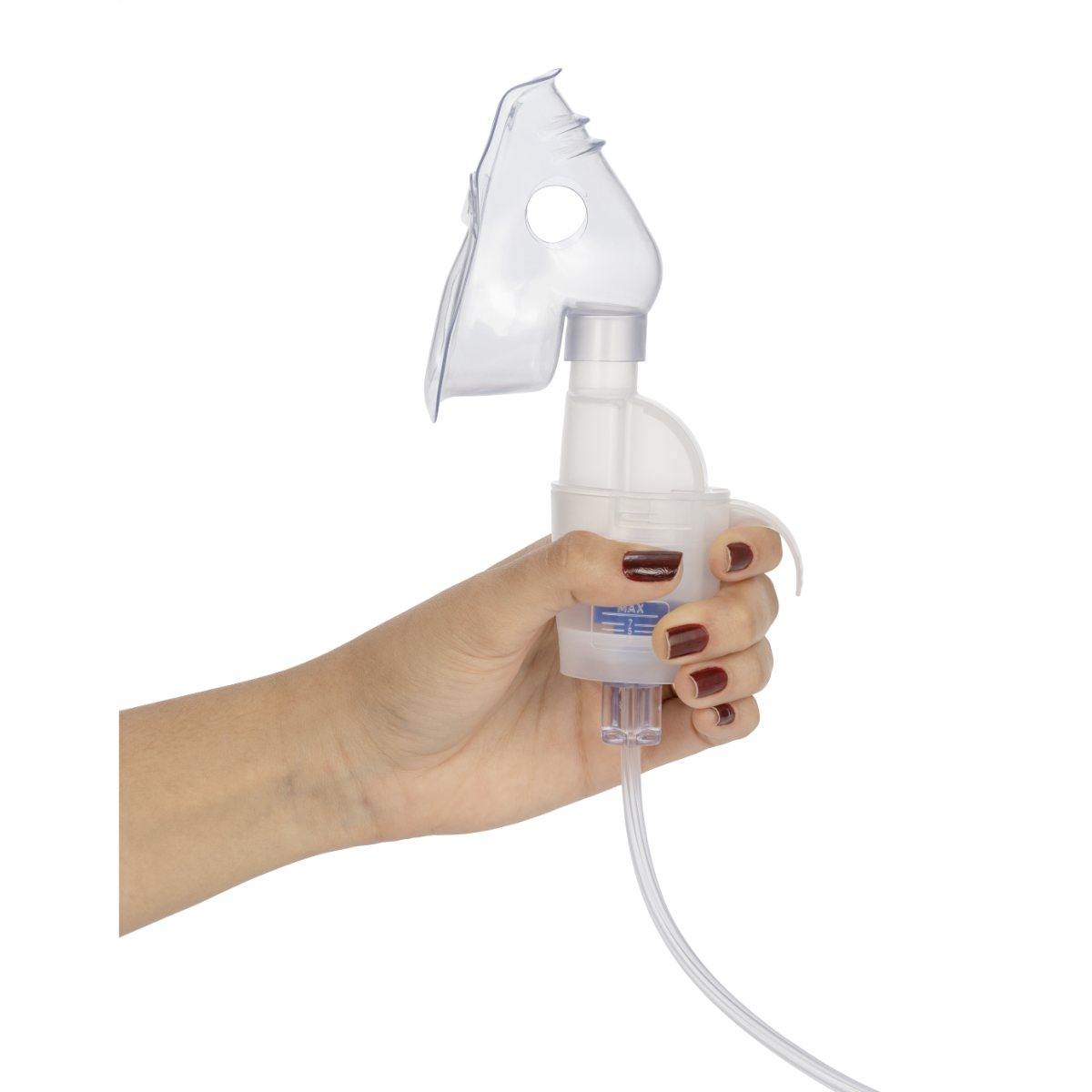 Pesa apenas 180 gramas, permitindo maior mobilidade durante a nebulização.