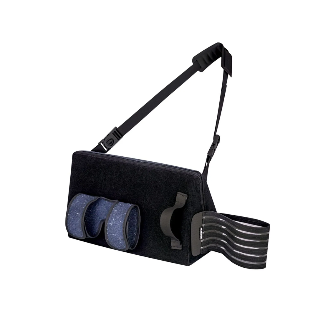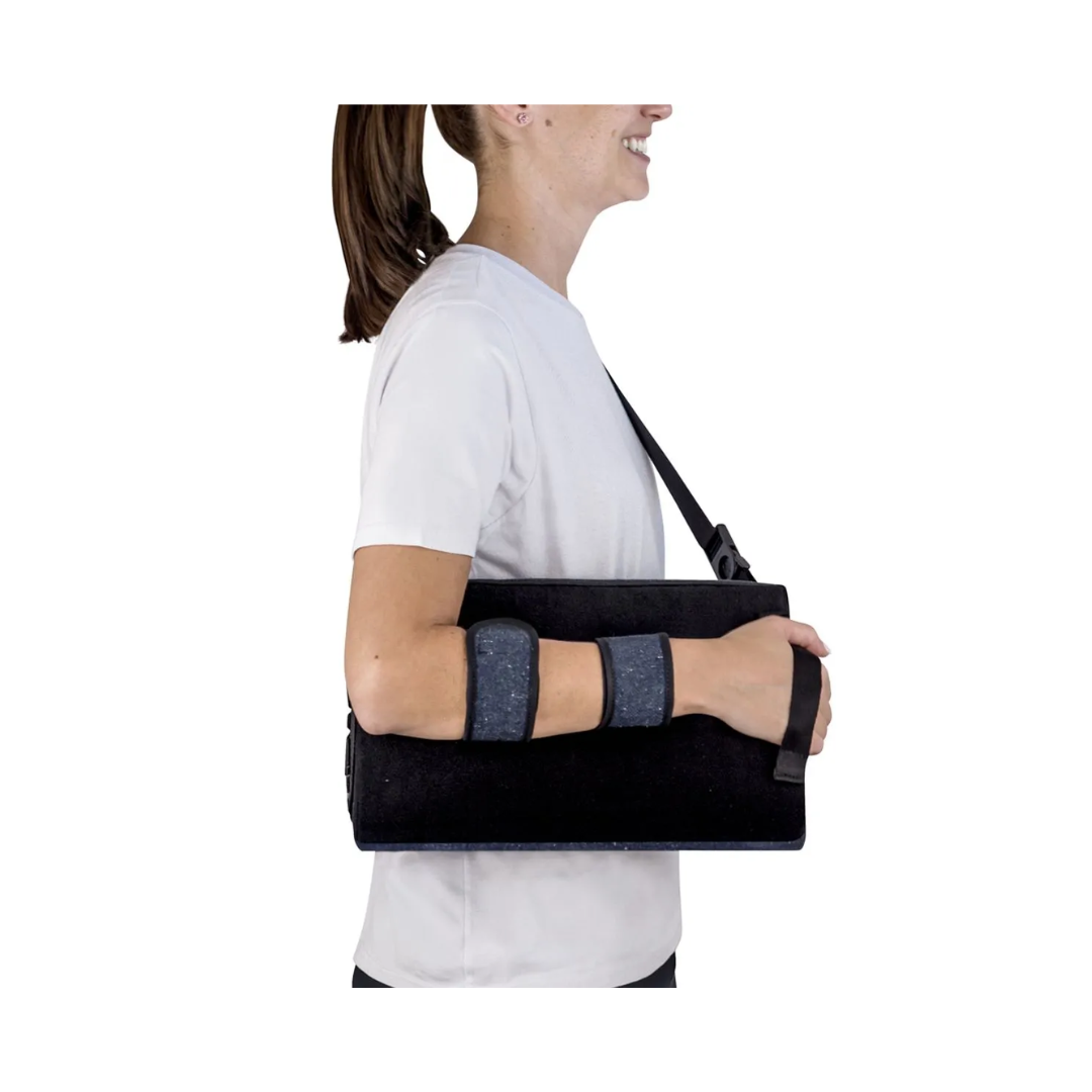 Promove o posicionamento do ombro em um ângulo de 30° para casos de pós-operatórios de lesões no membro superior. O recurso possui design ergonômico com sistema de fixação ajustável para o antebraço, permitindo que, quando necessário, o usuário mova o cotovelo, punho e mão sem comprometer a estabilização do ombro. Além disso, a fixação do antebraço é feita através de tiras, o que reduz a percepção de calor do usuário. A almofada de abdução (coxim) contém capa lavável, é leve e tem formato anatômico para oferecer conforto. O produto é bilateral, podendo ser usado no braço direito ou esquerdo, e parte de sua confecção é feita com tecido reciclado.